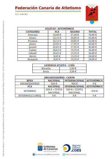 Como es habitual por estas fechas toca renovar la licencia de atletismo, aquí les facilito los precios estipulados por las federaciones esta temporada, desde monitor, entrenador, atletas a organizadores, tanto autonómica como nacional.