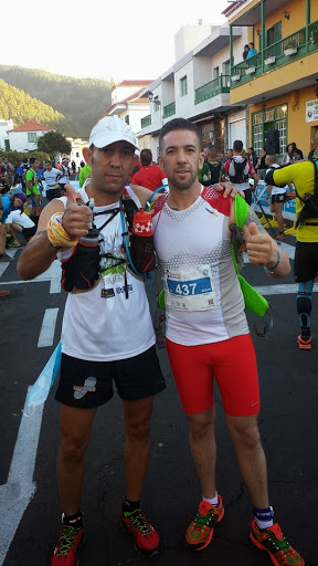 Un emotivo minuto de silencio por nuestro compañero fallecido el año pasado en esta Tenerife bluetrail que a más de uno se nos erizan los pelos.5,4,3,2,1 salida de la trail.Joderr que son 51km y esta gente sale a fuego. Mi madre..Menudos máquinas.Mi compañero de mi nuevo equipo CD Vallivana (en la foto) con dorsal 437 sale muy bien. Antes de la salida me había comentado que su objetivo era acabarla en 6 ó 7 horas. A por ellos Gabriel.