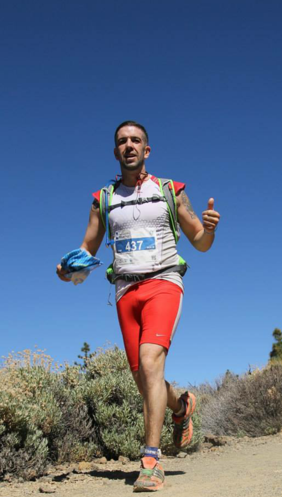 Mi objetivo hacer la prueba en 6 o 7 horas, le comento a Tati compañero de equipo (CD Vallivana) que comenta que casi ni a entrenado, cuenta atrás y salida rápida, después de 2 horas nos ponemos en 7 cañadas 1 hora y media mas en el centro de visitantes ,fortaleza , Realejos, sufro una pequeña caída que no me impide continuar, llego a la zona del mirador de san Pedro y ya casi no me quedan fuerzas, pero la gente aplaude y animan y uno saca fuerzas de flaqueza de donde sea y me pongo en el puerto de la cruz lago Martianez, cruzo meta y logro mi objetivo de 7horas 4 minutos, puesto 132 de la general 89 de los sénior y mi primera ultra maratón de 51km hecha.