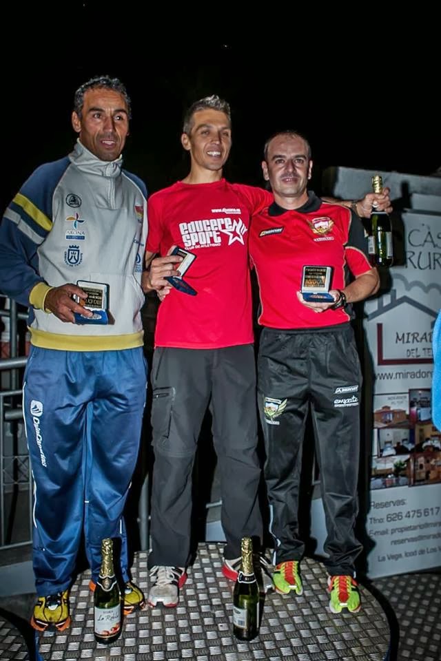 No sé en que puesto he quedado pero por la gente que vi al llegar imaginaba que estaría en torno al 6º de mi categoría pero sorpresa de Fin de Año, dicen mi nombre en el 3º puesto de los Vet40, justo en el momento en el que ya me marchaba rumbo al coche… Increíble, comparto podio con José Linares (Enducere Sport) y Zenobio (Arona Cajacanarias)…. joer, si esta gente son profesionales. ¿Qué hago yo aquí?…… Hay que aprovechar y disfrutar del momento porque aún no me lo creo… y que bien queda el equipaje del C.D. Vallivana… eso si… me falta la chaqueta… jejeje