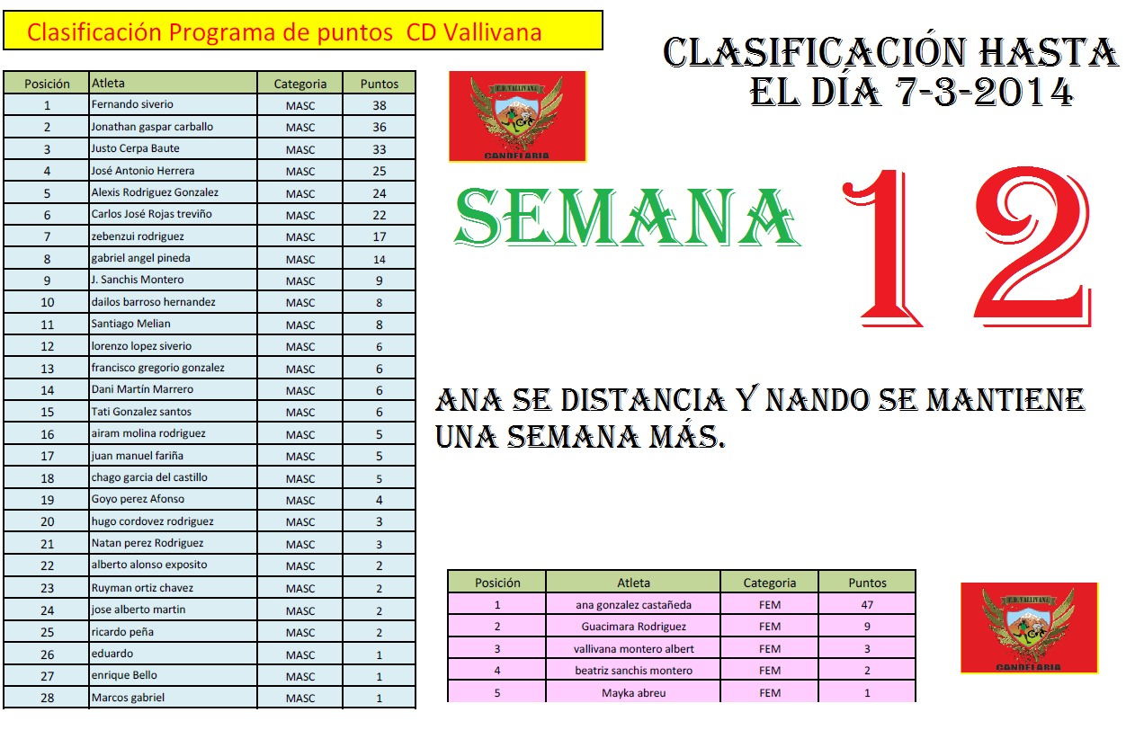 Aquí les facilito la clasificación tras las últimas carreras, (Trail de Arico y la Transgrancanaria.), La clasificación esta actualizada hasta el próximo día 7 de Marzo 2014.