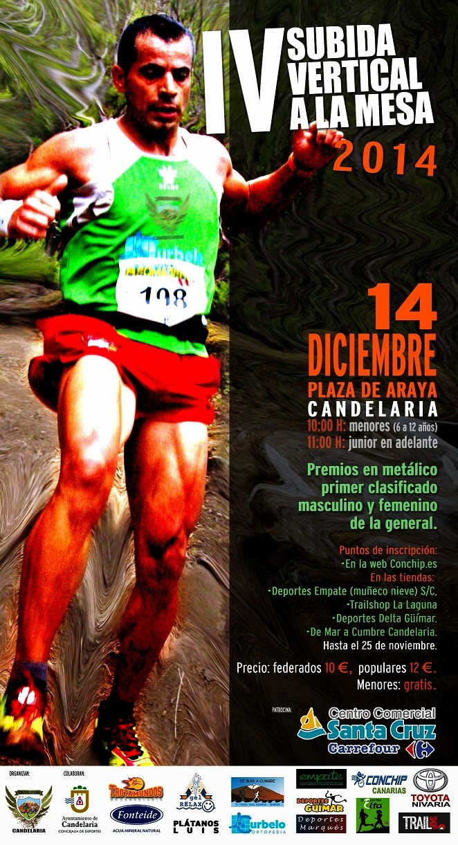 Para todos los participantes en la IV Subida vertical a la Mesa de Araya y acompañantes que lo deseen tendrán un estudio de la pisada gratuito en el policlínico Curbelo (Güímar) para aprovecha este regalo hay que llamar y pedir cita previa al telf 922511798 extensión 4, preguntar por zeben o alejando, digan van de parte Sanchis para el estudio de la pisada gratis. (El estudio no obliga a nada y en el caso de querer comprar las plantillas obtendrán un gran descuento).