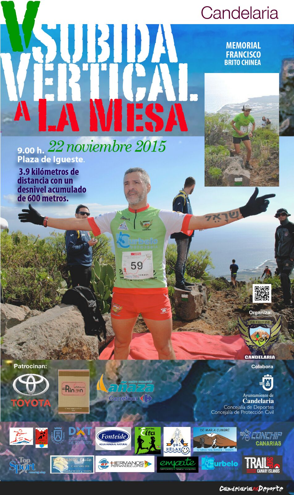 Ya tenemos cartel, y todo preparado para la V Subida Vertical a La Mesa en Candelaria, que además será Memorial Francisco Brito Chinea, en recuerdo al malogrado atleta y amigo del Trivalle que fue ganador de la ultima edición de esta carrera.
