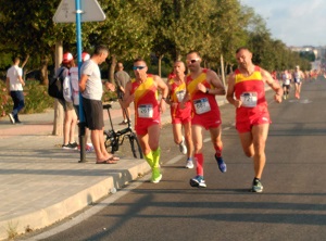A las 19:30 en punto se dio pistoletazo de salida a la siguiente prueba del 10 km, nada más salir la cabeza salió como si fuera el fin del mundo, a escasos metros hubo una caída en la que por suerte no pasaron males mayores a pesar de lo aparatoso que fue, nuestro mejor baza en esta salida fue Juan Manuel Quintero que hizo marca personal debutando en un europeo firmando un 39’26’’ (159 de la clasificación general siendo el 37 de la categoría M45), nuestro segundo clasificado fue Carlos Rojas Treviño con 40’46’’ entrando en el puesto 184 general y en el 31(M40), nuestro presi Jorge Sanchis Montero firmo una gran carrera mostrándose muy contento por el resultado 41’25’’ entrando el 193 de la general y el 43( M35), casi pisando los talones entro en el 199 German Peña Hernandez con 41’40 siendo el 50 en la M50, Andrés Pérez Rodríguez entró el 216 general y el 51 M45 con un crono de 44’13 siendo marca personal y debutando en un europeo al igual que Ana, Juan Manuel, y Carlos tras el entro Israel Morales Borges entrando el 238 general siendo el 57 (M45) con un crono de 47’57 no teniendo un buen día y aguantando como pudo hasta el final.