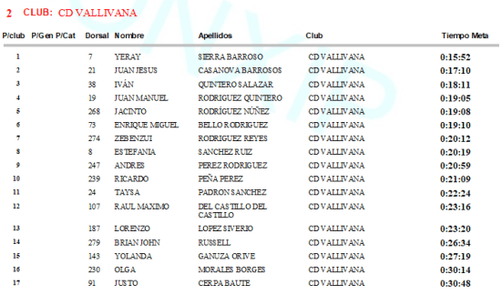A continuación dejo el resto de resultados en la carrera, enhorabuena a tod@s por los magníficos resultados y felicitar a los que hicieron marca personal como la compañera Olga entre otros.