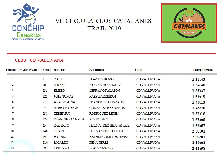 El pasado sábado día 27 de abril se disputo en los caseríos de catalanes la séptima edición de la Circular Los Catalanes Trail 2019. Prueba que el CD Vallivana co-organiza con la comisión de fiestas de Los Catalanes, la prueba un año más estuvo incluida en el calendario de la Federación Insular de Atletismo (FIAT), siendo este año CTO de Tenerife de carreras de montaña 2019 y además fue la segunda prueba puntuable en la Liga Conchip Canarias de carreras de montaña 2019.